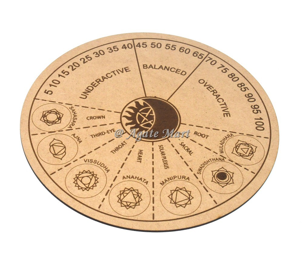 Get the best deal on 7 Chakra Engraved Divination Pendulum Board from Agate Mart. A pendulum is an object hung from a fixed point that swings back and forth under the action of gravity. The swing continues moving back and forth without any extra outside help until friction. Understand that if you are opening your chakras, there is no need to try to make over-active chakras less active. They are simply compensating for the inactivity of closed chakras. Once all of the chakras are opened, the energy evens out, and becomes balanced.