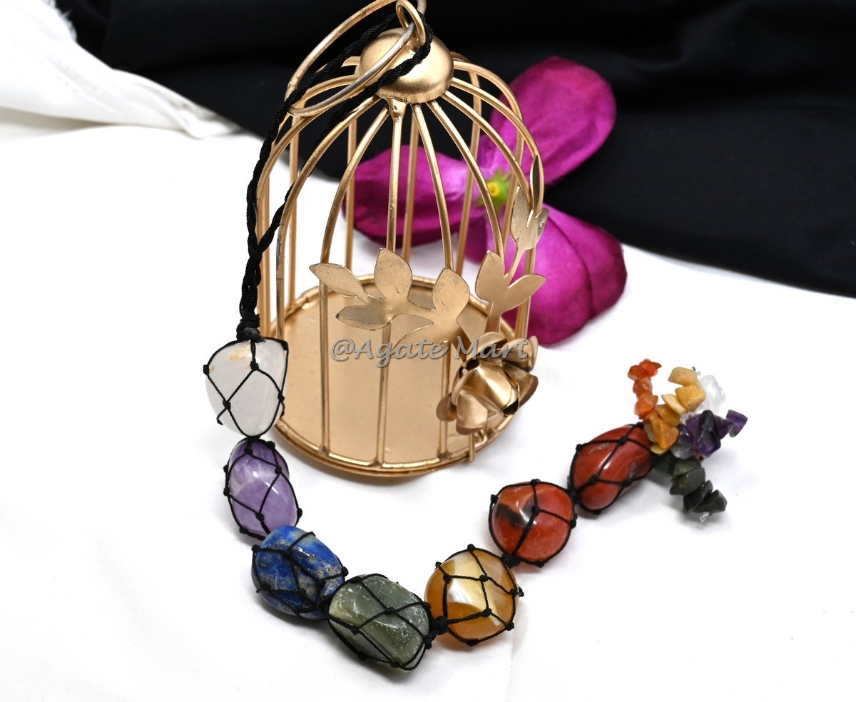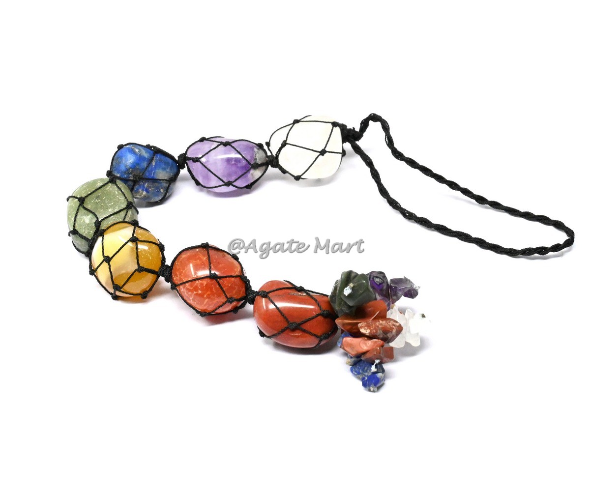 7 Chakra Tumbled Stone For Car And Home Hanging
