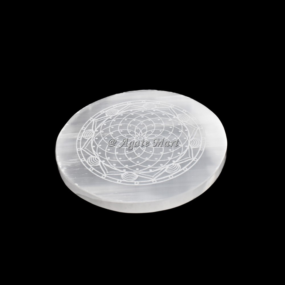 Accent Flower Of Life Engraved Selenite Charging Plate