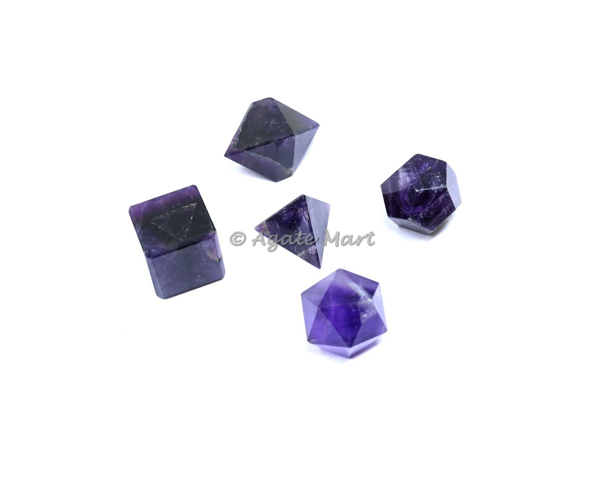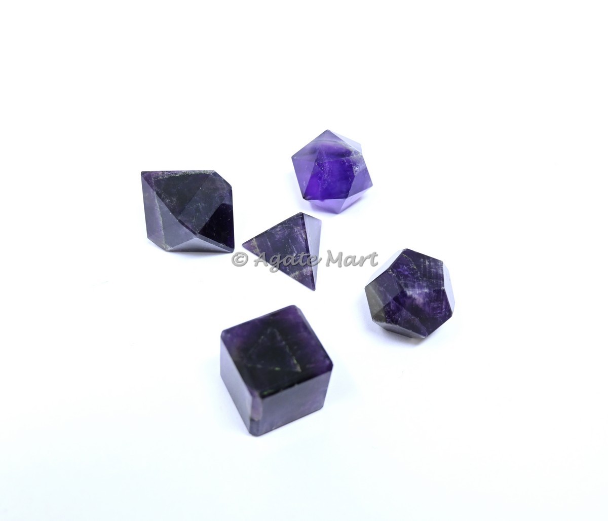 We are the supplier of healing crystals and we supply our customers best quality product. We have a collection of sacred 5pcs geometry set you can see our collection by visiting our website www.agatemart.com. Now let you get A detailed description about Amethyst, Amethyst relieves physical, emotional and psychological pain or stress. Amethyst eases headaches and releases tension. It reduces bruising, swellings, injuries, and treats hearing disorders. Amethyst heals diseases of the lungs and respiratory tract, skin conditions, cellular disorders and diseases of the digestive tract. We are sure that you will not get dissapointed by buying our any products.