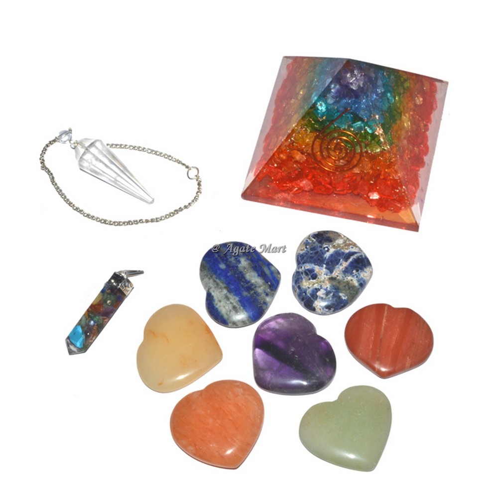 Chakra Hearts Pyramids Positive Mind Crystals Kit