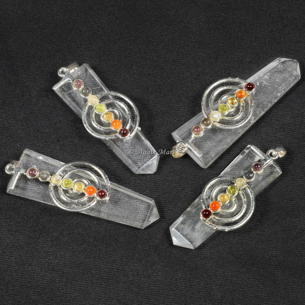 Unique flat shaped pendants are famous for their ability to focus, amplify, store and transform energy. Buy these Crystal Quartz with Seven Chakra Stones Choko Reiki Flat Pendants at wholesale price today. Quartz pendants are known for its ability to focus, amplify, store and transform energy. For any special order contact us directly.