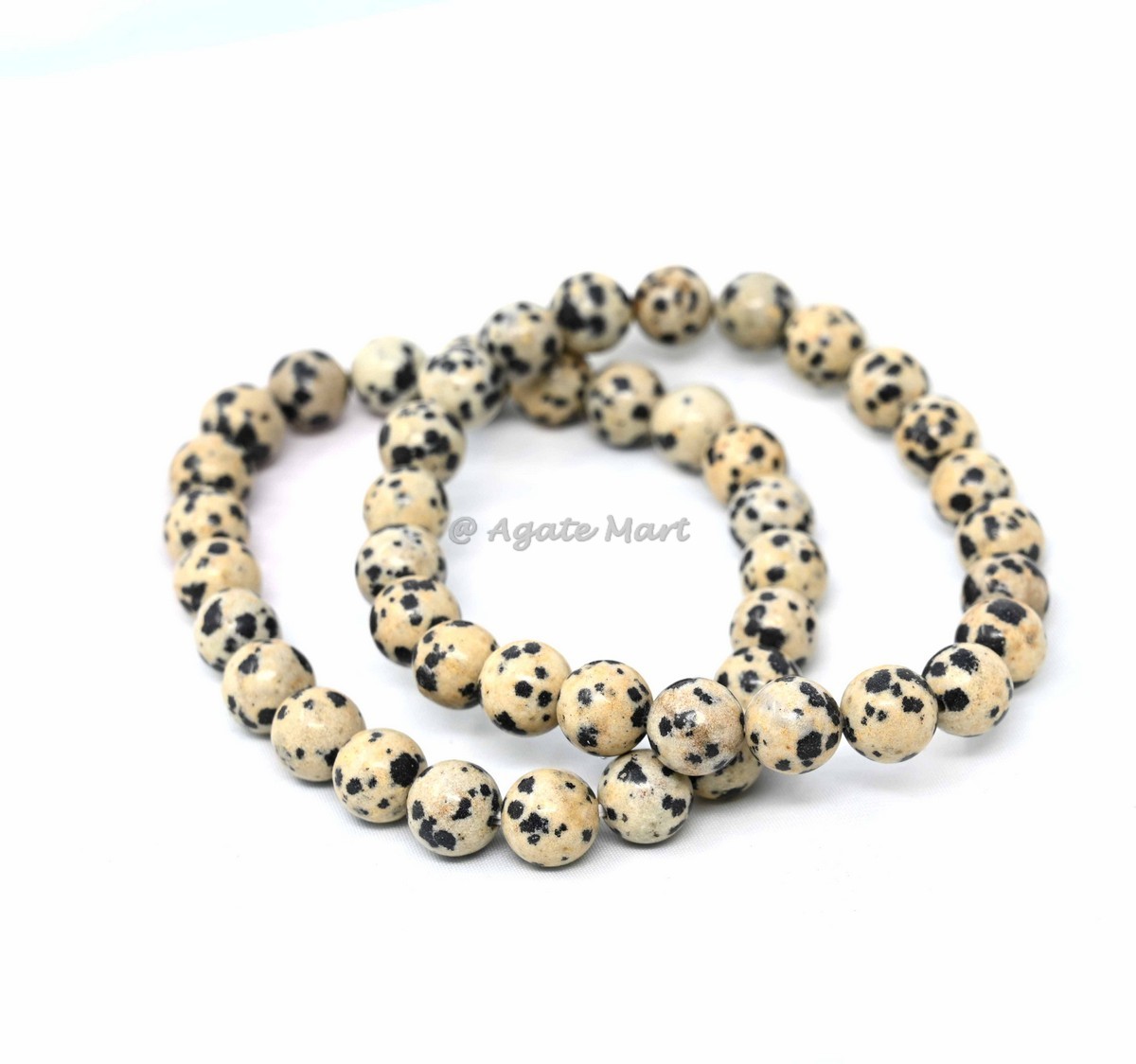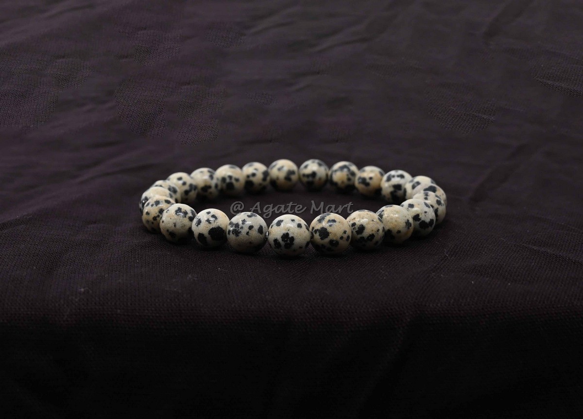Playful energy with our Dalmatian Jasper Bracelet. This stunning bracelet is crafted from dalmatian jasper, known for its grounding and protective properties. Dalmatian jasper is a powerful stone that helps to promote balance and harmony, making it an ideal choice for those seeking inner peace and stability. Each bead is carefully selected to ensure maximum effectiveness. This bracelet is perfect for those looking for a unique and stylish accessory. Ideal for wholesale buyers looking for high-quality, unique gemstone jewelry, this bracelet is a must-have addition to any inventory. Available in bulk for great savings, making it an excellent choice for retailers and resellers. Shop at Agate Mart today and add this beautiful dalmatian jasper bracelet to your collection.