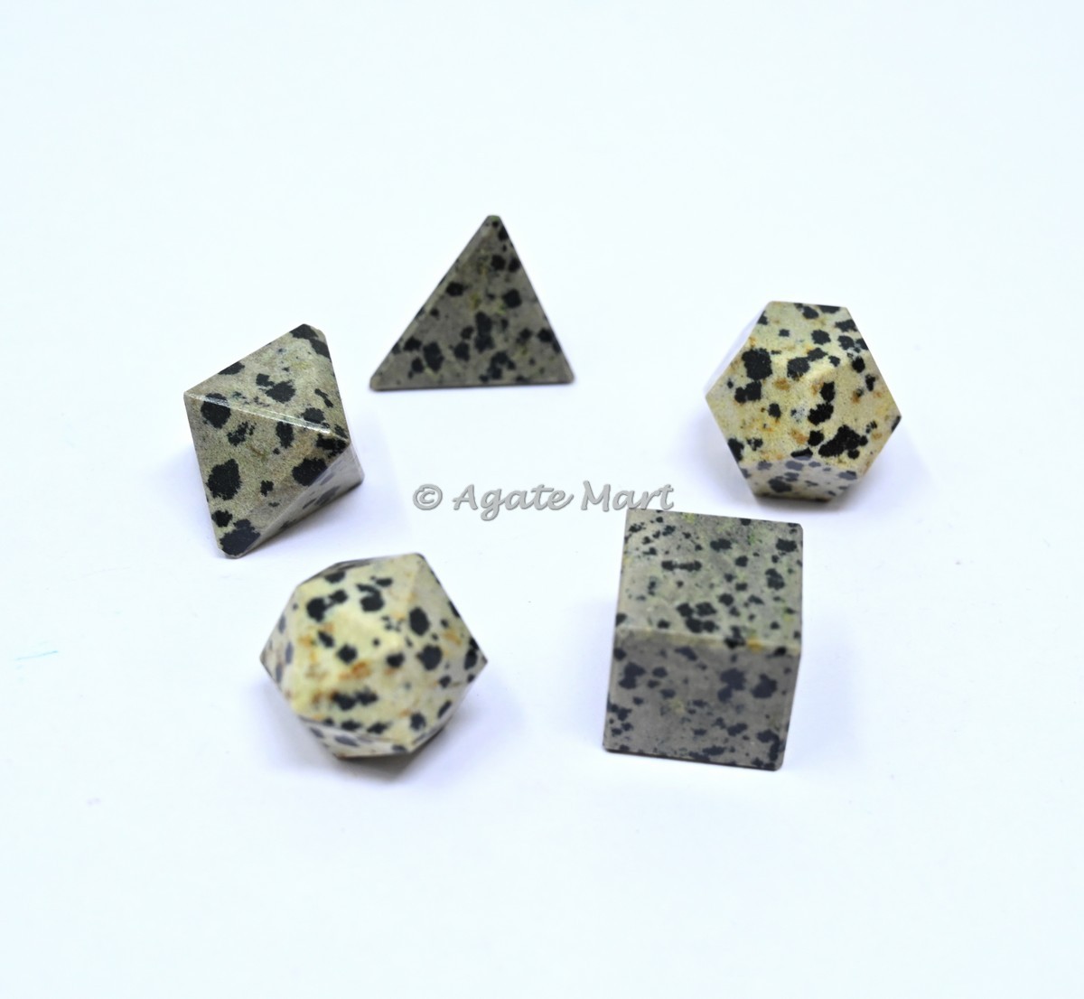 We are the supplier of healing crystals and we supply our customers best quality product. We have a collection of sacred 5pcs geometry set you can see our collection by visiting our website www.agatemart.com. Now let you get A detailed description about Dalmatian jasper, It works by stimulating the nervous system, and reflex actions. Making it a powerful healer to the muscles, tendons, cartilage, while increasing the overall balance of the body. This is helpful in preventing injuries like strains, sprains, and muscle spasms. We are sure that you will not get dissapointed by buying our any products.