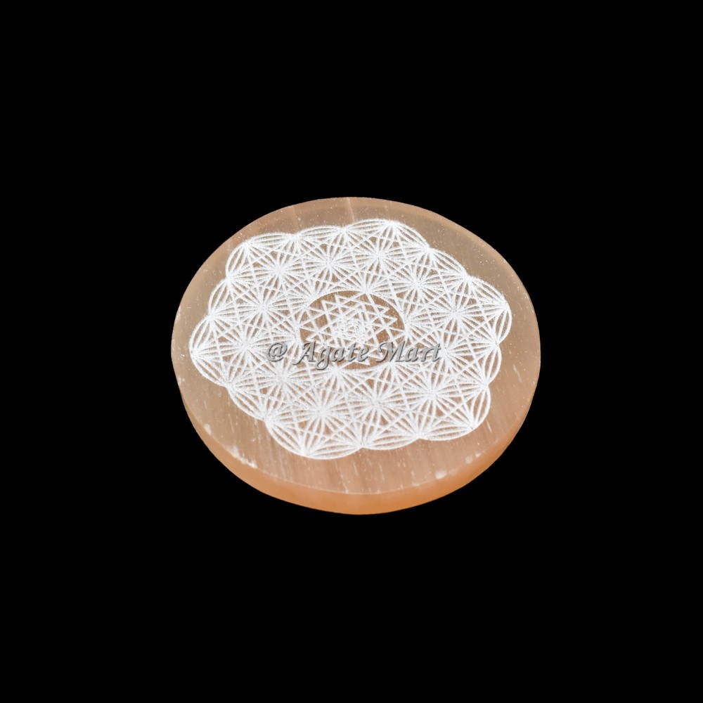 Flower Of Life With Metatron Orange Selenite Charging Plate