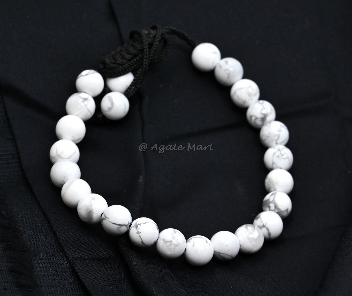 Find calm and peace with our Howlite Adjustable Bracelet. This beautiful bracelet is crafted from howlite, known for its calming and soothing properties. Howlite is a powerful stone that helps to reduce stress and anxiety, promoting a sense of peace and tranquility. Each bead is carefully selected to ensure maximum effectiveness. The adjustable design makes it suitable for any wrist size, providing both comfort and style. Ideal for those seeking a tool for stress relief and relaxation. Perfect for wholesale buyers looking for unique, high-quality gemstone jewelry, this bracelet is a must-have addition to any inventory. Available in bulk for great savings, making it an excellent choice for retailers and resellers. Shop at Agate Mart today and enhance your peace of mind with this beautiful howlite bracelet.
