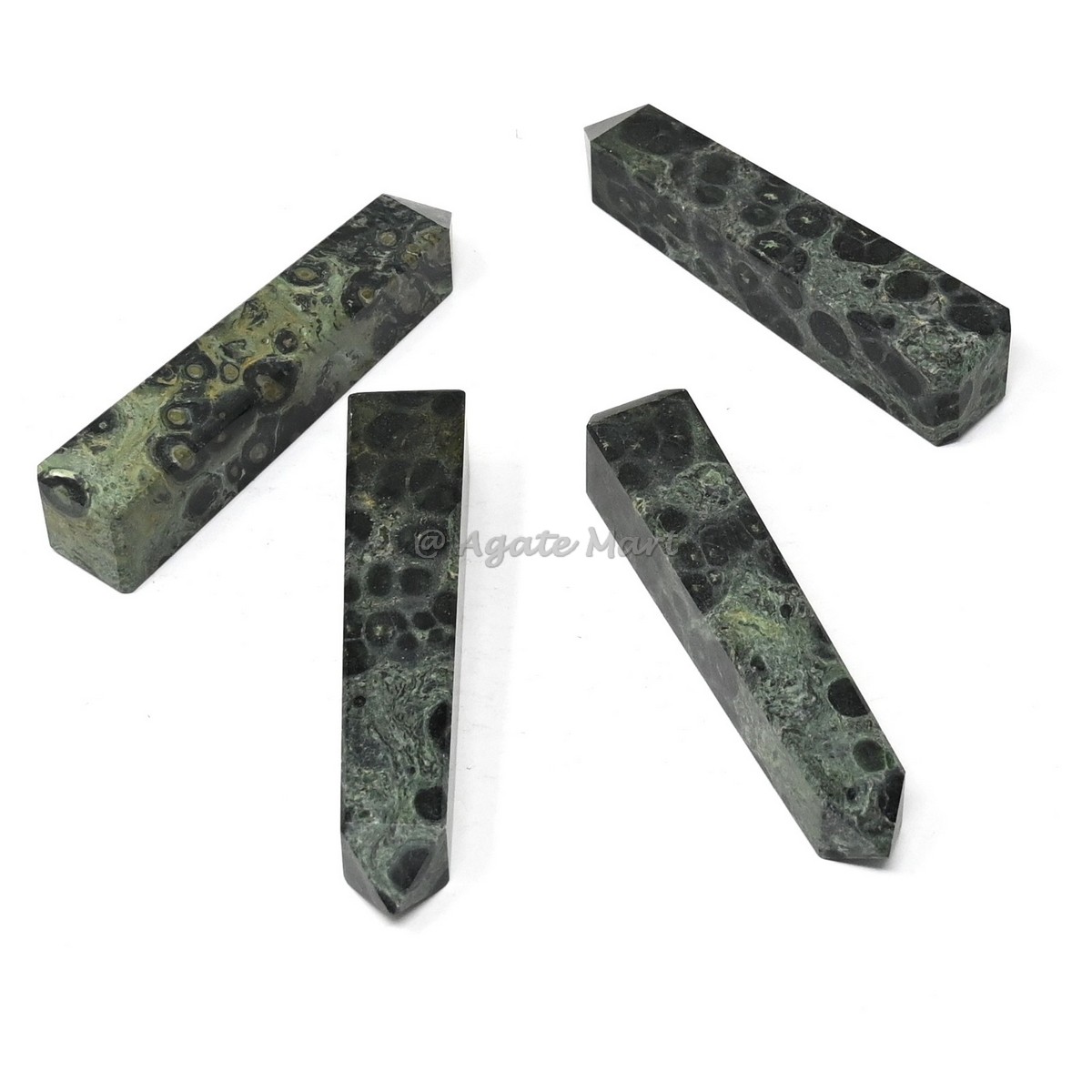 Kambaba Jasper Gemstone Tower provides earthy, calming energy by its peculiar patterns and colors. This jasper tower is popular in grounding and peace-making for meditation spaces and decor. It is among the important pieces for wholesale buyers interested in high-quality, grounding stones with natural beauty.