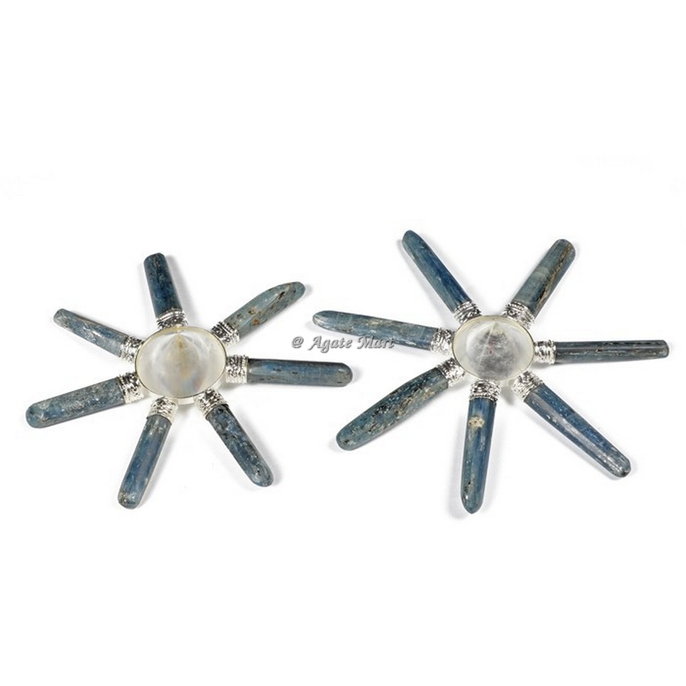 Kyanite Healing Generator is a wonderful Healers Tool which helps find direction and purpose, worth and awareness. It is used as a magnetic field finder, like a compass and it`s interior crystal structure aligns with the Earths ley lines when it is developing. The four polished Blue Kyanite crystals radiate energies in an even flow, soothing and building. The Quartz Pyramid draws in power to the base and then creates from it very stable conditions. Order online now.