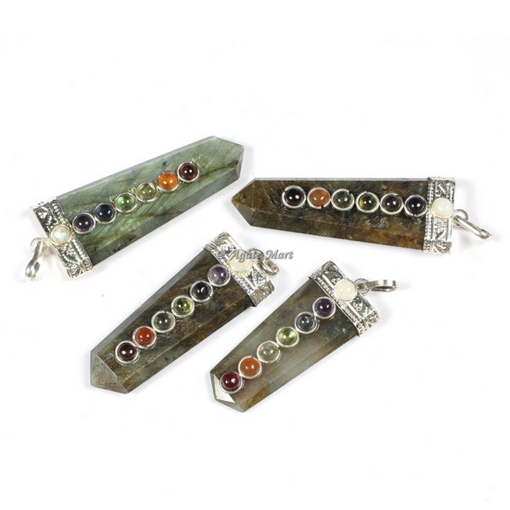 Labrodrite with Seven Chakra Stones Pencil Open up your mind to various levels of consciousness by meditating. It has various health benefits and is also known as stabilizer stone. Buy this Labrodrite with Seven Chakra Stones Pencil Pendants at wholesale prices online.