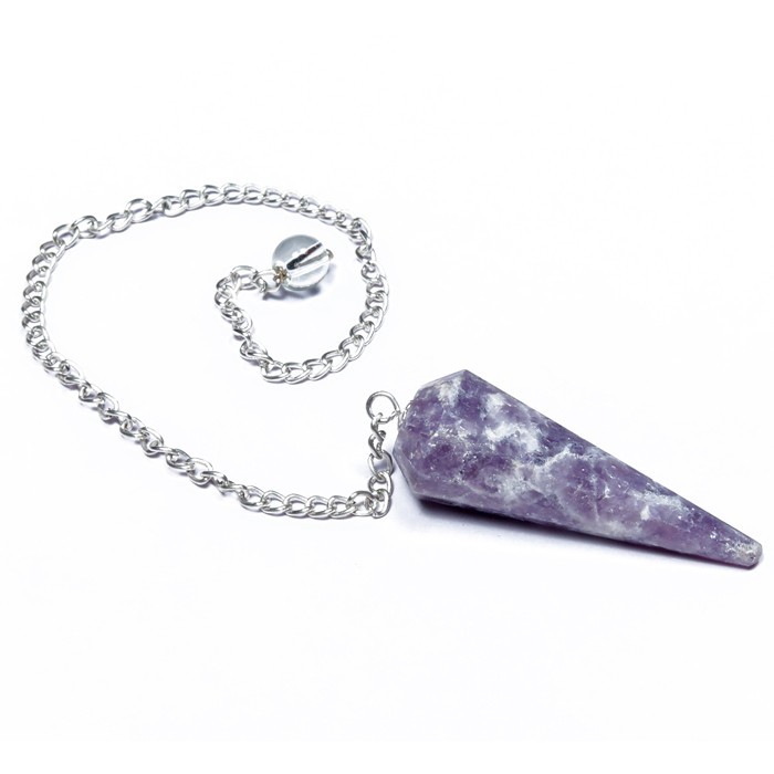 Are you looking for Lepidolite 12 Faceted Plain Pendulum? We offers the best collection of Lepidolite 12 Faceted Plain Pendulum. Lepidolite Pendulum encourages one to overcome past hurts, break negative mental patterns, and release energy blockages. It aids one in realizing their own positive characteristics, increase one`s self-confidence, and brings pure joy to one`s life. It brings deep emotional healing, soothing and reducing stress and depression. It dissipates negativity and insists on being used for the highest good. It activates the throat, heart, third eye chakras and the intellect. It opens the crown chakra, clearing blockages and bringing cosmic awareness. Place the order at Anam Agate.