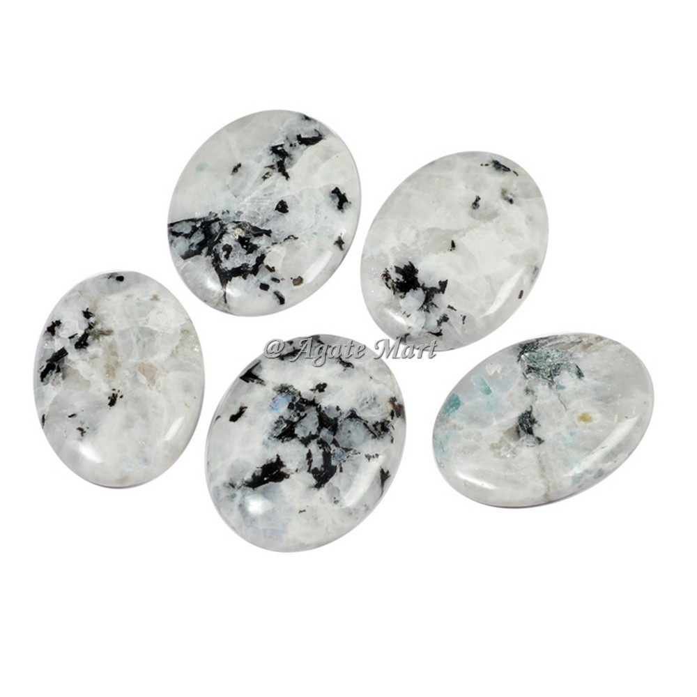 Buy Rainbow Moonstone Palm Stones Online at lowest Prices From Agate Mart. Moonstone has for some time been known for its quieting, mitigating characteristics on the passionate body. Its vitality is adjusting and recuperating, aiding the dominance of feelings by bringing them under the control of Higher Will, instead of communicating or stifling them. It additionally distinguishes enthusiastic examples that are put away in the subliminal, and fills in as a watchman to contain touchy interests, and to animate certainty and self-control. Moonstones can be put at the focal point of the jawline (the Moon Center) to make this equalization. Lined up with the energies of the Goddess, Moonstone can help one effectively enable the Divine Feminine part of herself.Rainbow Moonstone goes about as a crystal, diffusing vitality all through the emanation. It gives clairvoyant insurance, clearing the psyche and faculties, and helps in clear envisioning and quiet rest. It diverts antagonism and facilitates passionate injury. Lined up with the Goddess, Rainbow Moonstones interface with the energies and spirits of Nature, from plant devas to galactic cognizance.
