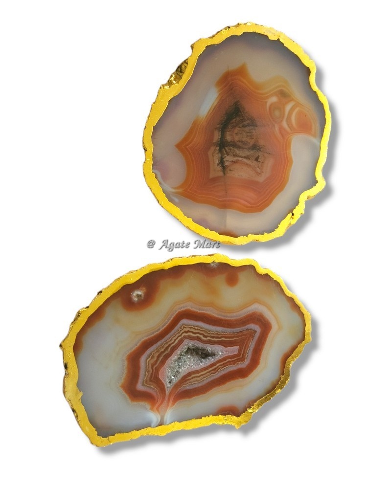 Agate Mart Supplier and wholesaler of healing crystals coasters. Red Onyx Agate Slices Gold Electroplated Coaster