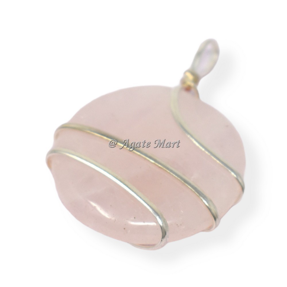 Rose Quartz Circle Wire Wrapped Pendants made from highly polished gemstone chips. Rose Quartz, a "stone of love," is said to promote compassion and calmness. It restores trust and harmony in relationships, encouraging unconditional love. Rose Quartz purifies and opens the heart at all levels to promote love, self-love, friendship, deep inner healing and feelings of peace. These Rose Quartz Circle Wire Wrapped Pendants looks elegant with the pale to deep pink crystals held perfectly by the Silver toned wire branches. This makes for a beautiful gift. For any special order or for changing the design of the Rose Quartz Circle Wire Wrapped Pendants contact us directly.