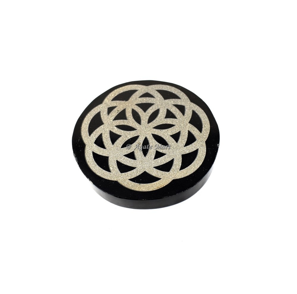 Seed Of Life Engraved Coaster On Black Agate