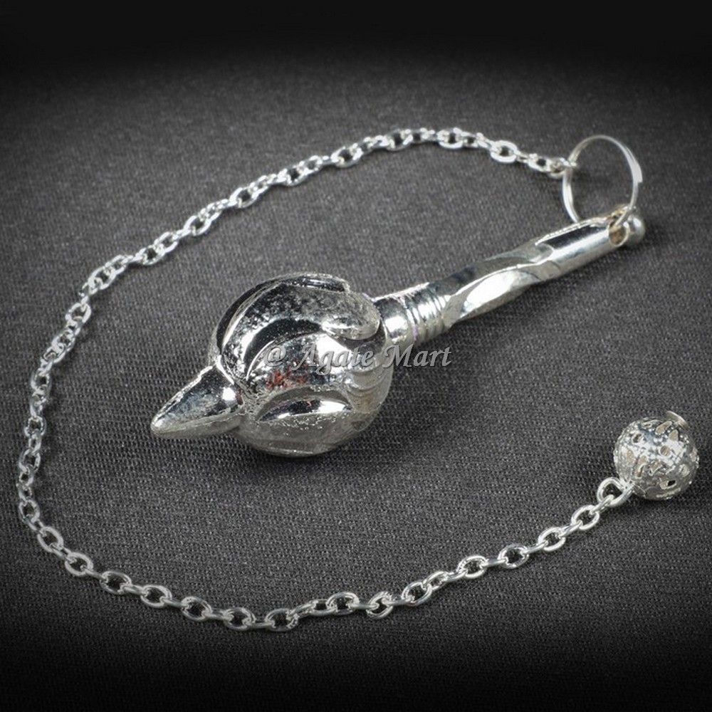 Silver Hanuman Gada Dowsing Pendulum always protects the person from evil eye, negative energies and evil effect. It boosts positive energies and keeps the person mentally strong. The mace is a sign of immense strength, courage, radiance, fearlessness and daring. Order online now.