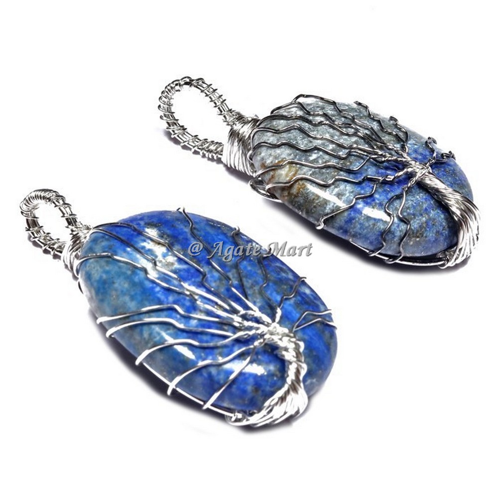 Huge collection of Tree Of Life Lapis Lazuli Pendants at lowest price. Lapis Lazuli is good for balancing the Throat Chakra. It encourages clear expression when sharing information with others, including easier communication of anger. It helps you to find your voice in any situation and to help you to speak up for yourself. The beautiful shape and wonderful vibration of the crystal make these powerful energy tools. Tree of Life is a Symbol of Strength and Courage. Tree stands uproot even in strong winds thus giving us a lesson and motivates us in taking courage in our daily lives. Tree of Life Pendants helps us in increasing one`s morale and confidence.