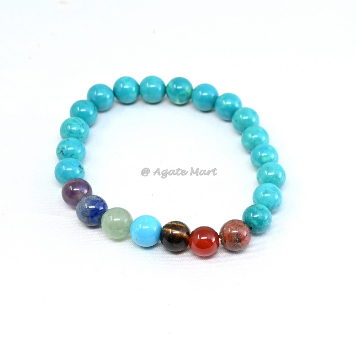 Promote spiritual growth with our Turquoise 7 Chakra Bracelet. This stunning bracelet is crafted from turquoise, known for its protective and healing properties, combined with chakra stones to enhance overall well-being. Turquoise is a powerful stone that helps to balance and align the chakras, promoting spiritual growth and emotional stability. Each stone is carefully selected to ensure maximum effectiveness, helping to align and balance your chakras. Ideal for wholesale buyers looking for high-quality, unique chakra jewelry, this bracelet is a standout piece that offers both beauty and functionality. Available in bulk for great savings, making it an excellent choice for retailers and resellers. Shop at Agate Mart today and enhance your energy with this beautiful healing accessory.
