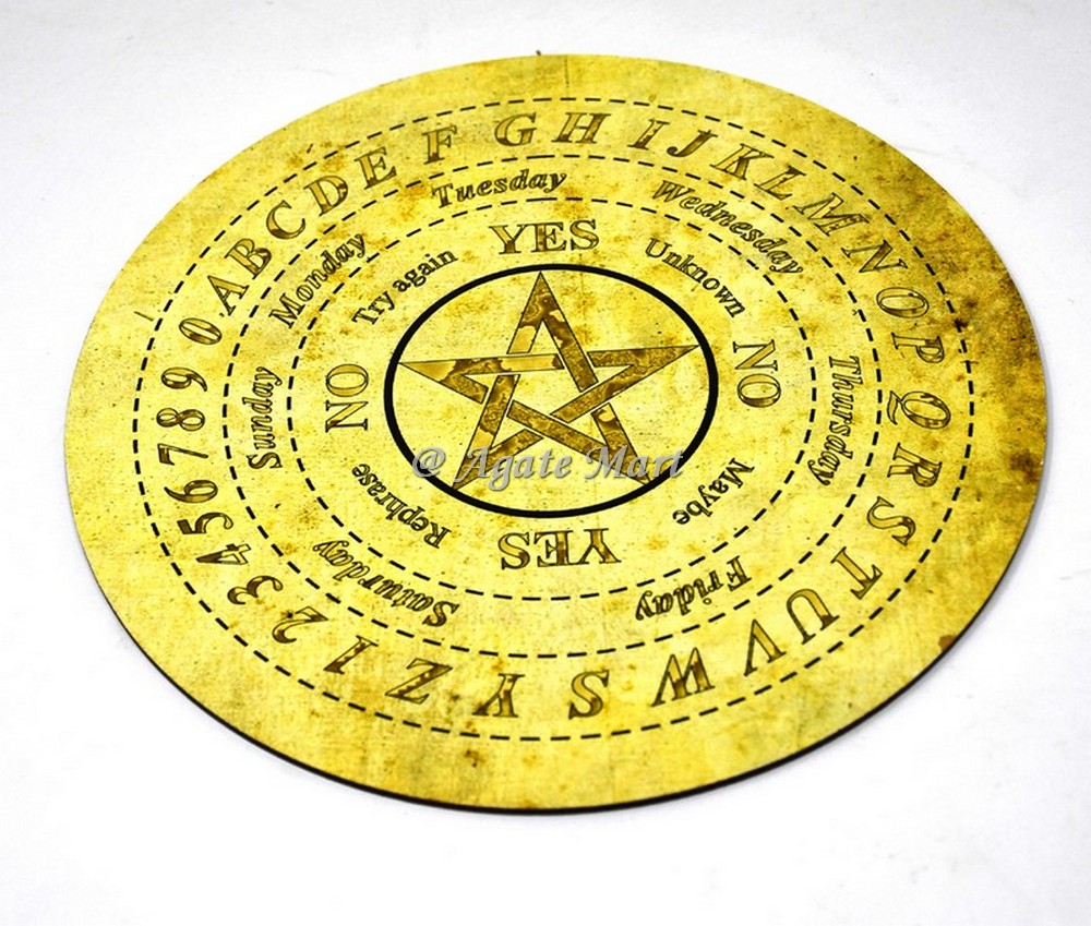 Explore the collection of Week With Numbers Pentagram Pendulum Board at Affordable Price. Week With Numbers Pentagram Pendulum Board helps in opening up the Root Chakra. It is purges and changes thick vitality into a lighter vibration. It is also a strong spiritual grounding stone. It is a powerful stone for protection against negative energy of all kinds including psychic protection and EMF protection. The energy of this Pendulum is known to help you to release stress. Moon And Sun Printed Pendulum Board have been known throughout history for their beauty and healing qualities. Many people believe that each stone emits energy that affect our well-being. It is available in high quality and bulk quantity.