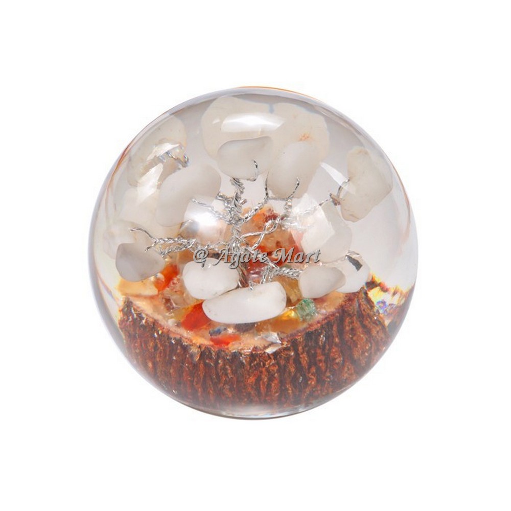 White Agate Stones in Orgonite Crystals Sphere